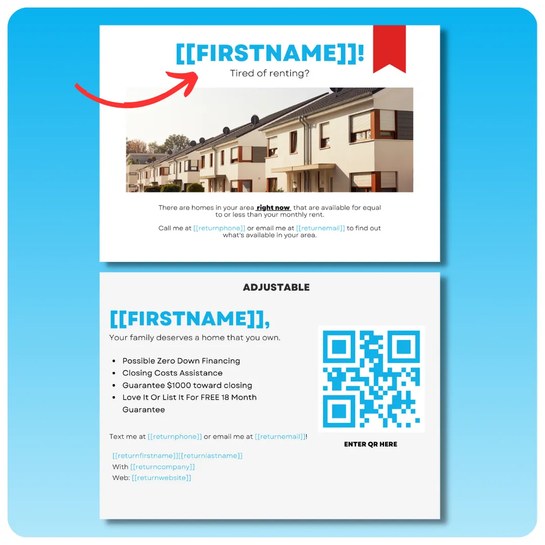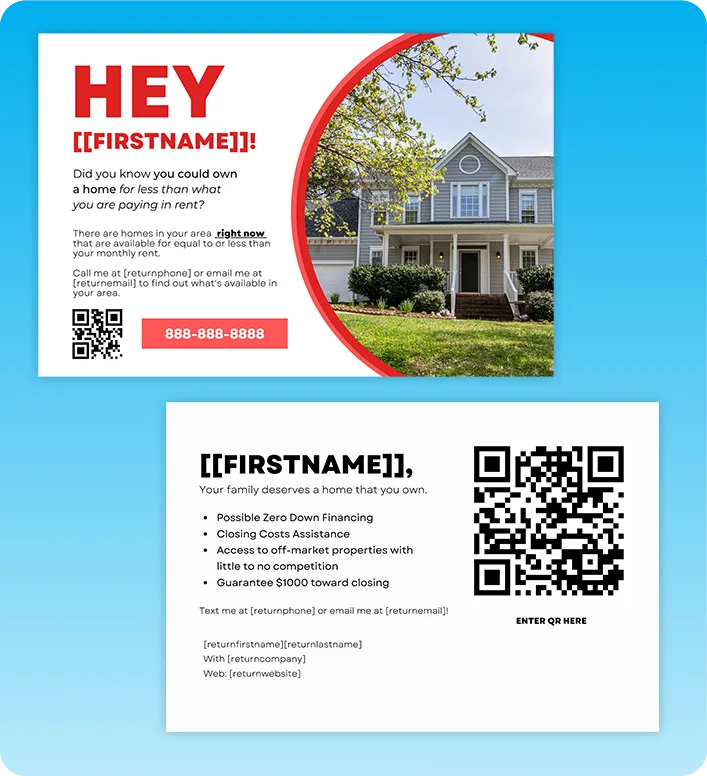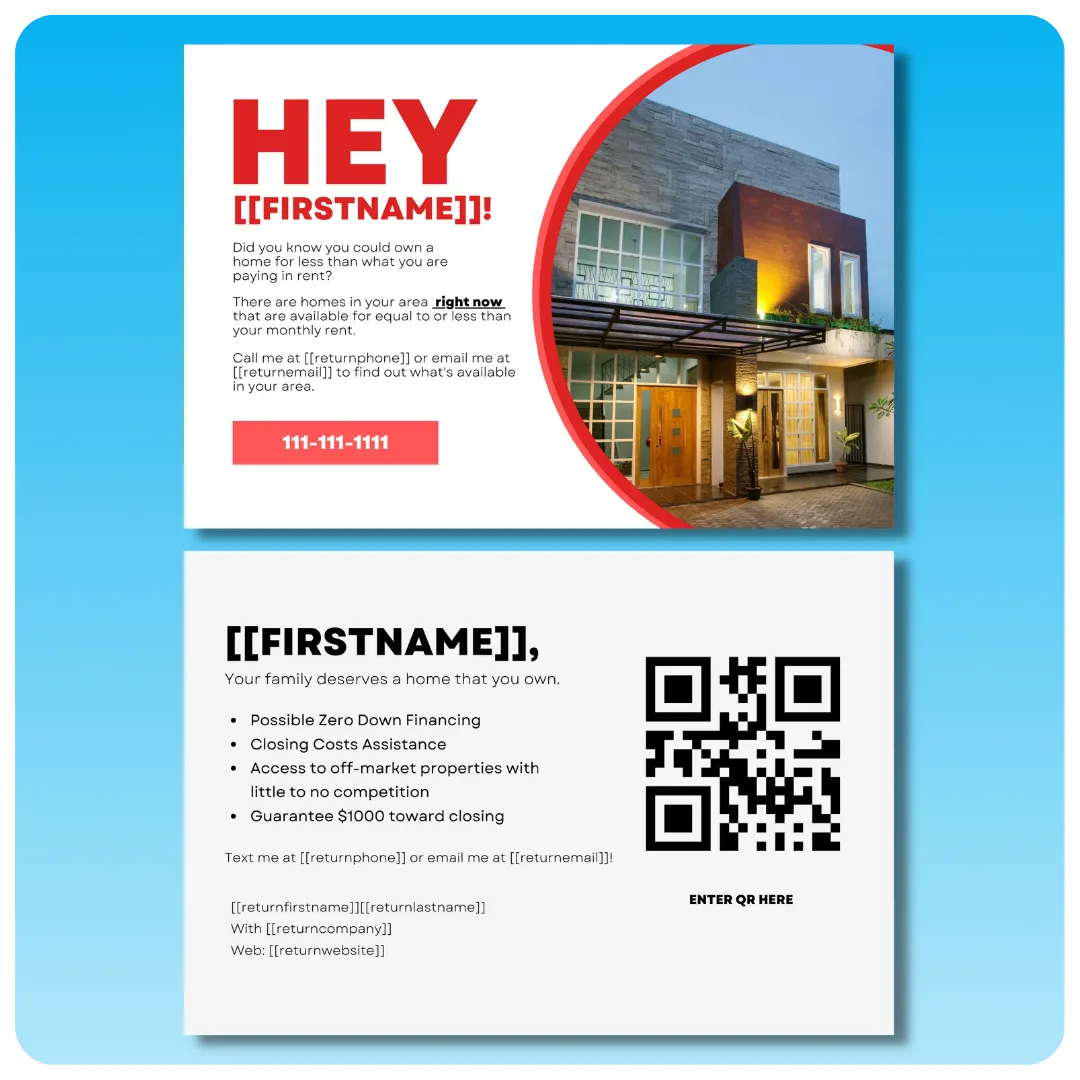 Postcards are a crucial part of any direct mail strategy. So, we give you access to send out UNLIMITED postcards! Just pay postage and we'll handle the rest. (4x6 postcards for Pro membership, 4x6 & 5.5x8.5 postcards with Executive membership)